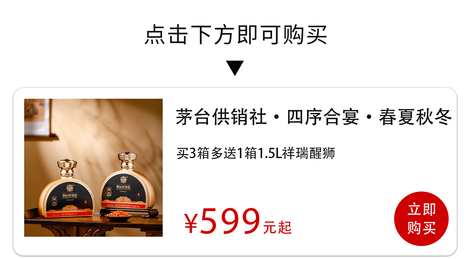 懂行的朋友今天入手3箱「春夏秋冬」,即可赠送1.5L祥瑞醒狮酒礼盒,同是正宗茅香!千万不要错过!!