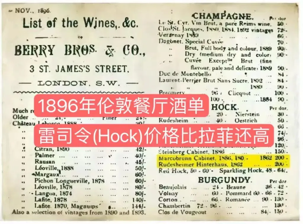 雷司令(Hock)的价格比拉菲还高!