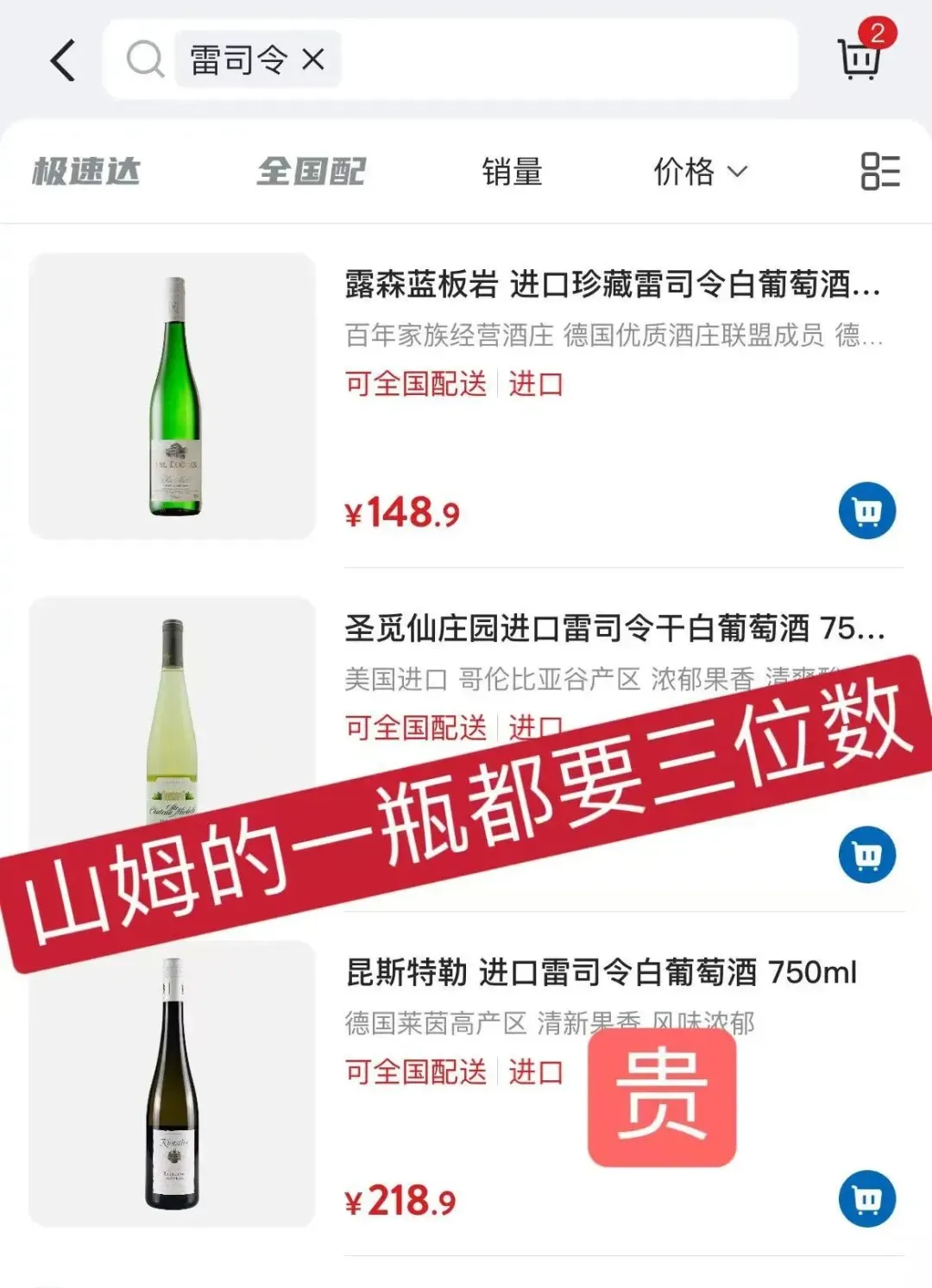 名庄的雷司令真的不便宜,山姆随便一瓶雷司令都是三位数。