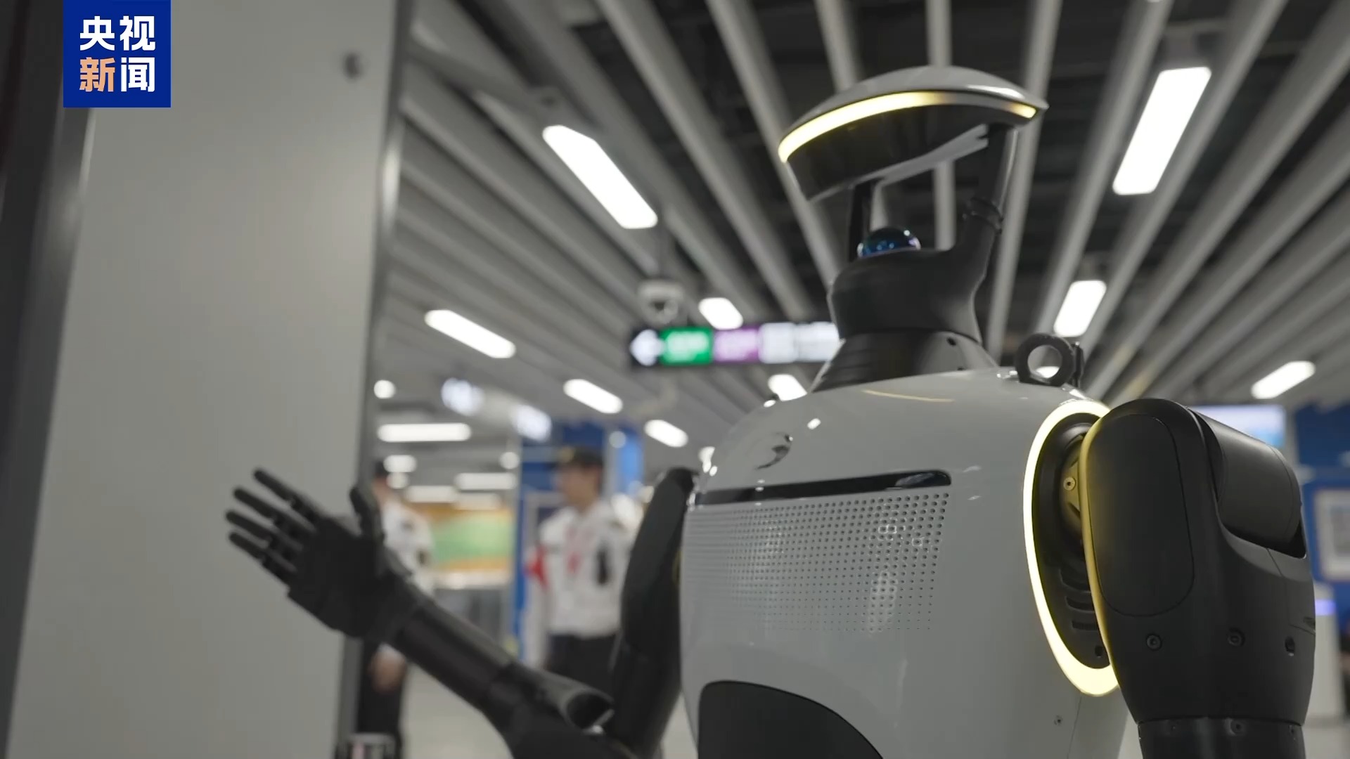 在广州黄村地铁站,一位由广汽集团研发的“新同事”正自如地为旅客提供指引与安检服务。