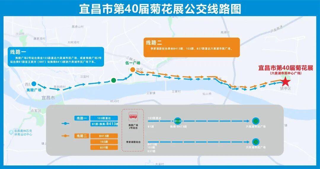 展会期间宜昌公交集团将开通文旅直通车,定时定点从夷陵广场2号站台直达六泉湖公园,中途仅停靠三峡游客中心公交站(伍家岗万达),其他站点不停靠。