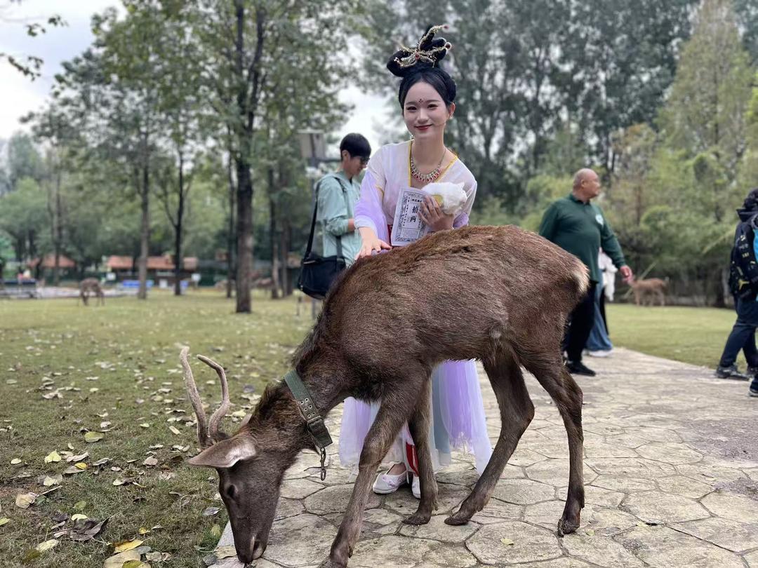 景区特别推出"月满华诞、嫦娥邀约"主题系列活动。在景区兔园的“月宫”打卡点,游客可与“嫦娥仙子”进行中秋民俗问答、"仙凡对弈"、明月飞花令等活动,获得奖品,参与"玉兔赐福"寻宝游戏。“寿星老”则在鹿园和“鹿童”们迎接小朋友们的到来,在这里可以通过和“老寿星”一起玩游戏,获得精美奖品。财神爷等NPC将随机出现在园区各个区域,如果偶遇财神爷一定不要错过互动机会,通过趣味游戏获得“银票”,凭“银票”即可体验园区相关游乐项目。